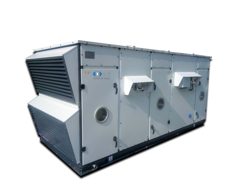 屋頂式空調(diào)機組是一種大、中型單元整體式機組,由壓縮冷凝段、蒸發(fā)過濾段、送風(fēng)段三段組成。按功能可分為:單冷型、電加熱型、恒溫恒濕型、恒溫恒濕潔凈型、熱泵型等類型。